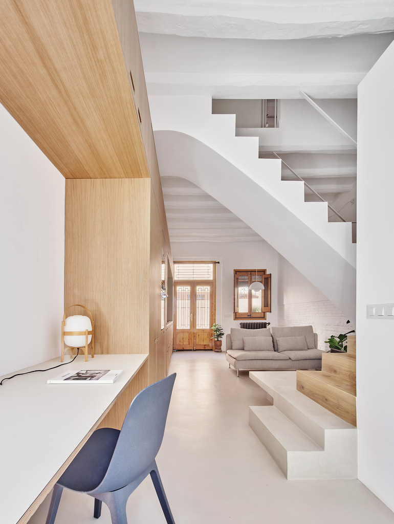 La intervenció aprofita el volum disponible més que la superfície, i incorpora els elements originals recuperats com a part activa del nou relat espacial. El projecte no pretén reconstruir allò que es va perdre, sinó recompondre la identitat de la casa a través de la seva pròpia transformació.